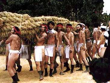 起源と語源はまったく不明の奇祭で、600年ほど前から伝わるといわれ、五穀豊穣・大漁・子孫繁栄・無病息災を祈願する。